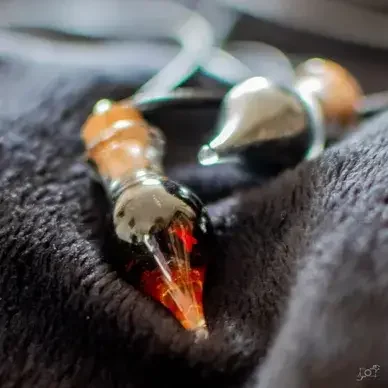 Seal your coal in a flame-shaped vial, with added flame detail to carry around your neck. The vial will be sealed with wax.