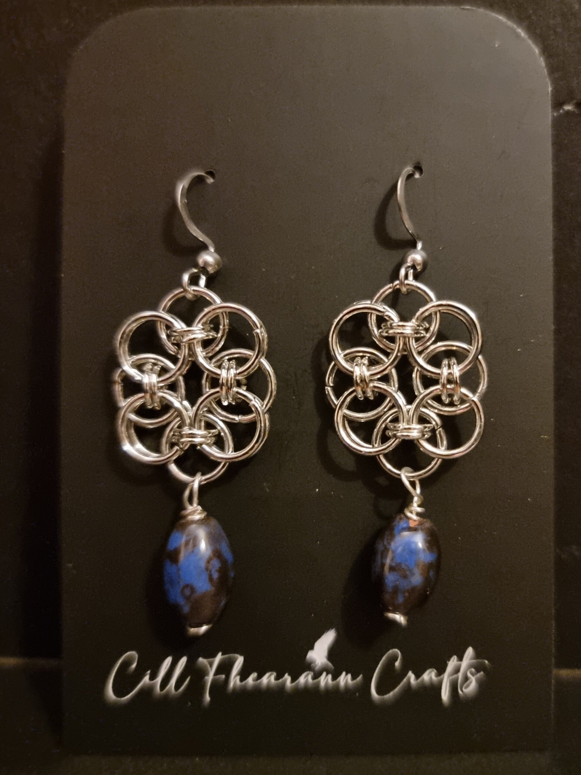 Stainless Steel Chainmail earrings in an intricate celtic design.
